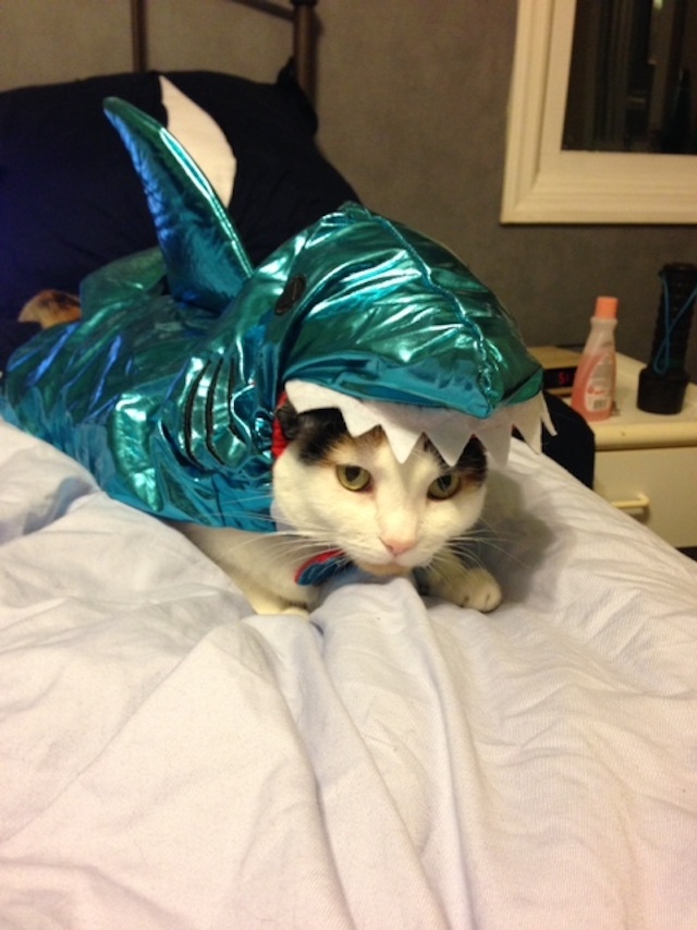 my cat and i have a pretty good deal going where 364 days out of the year she doesn’t have to do anything but take naps and eat treats and play with catnip toys and get chin scratches, and then one day out of the year i make her put on a costume and take humiliating pictures for 10 minutes.
