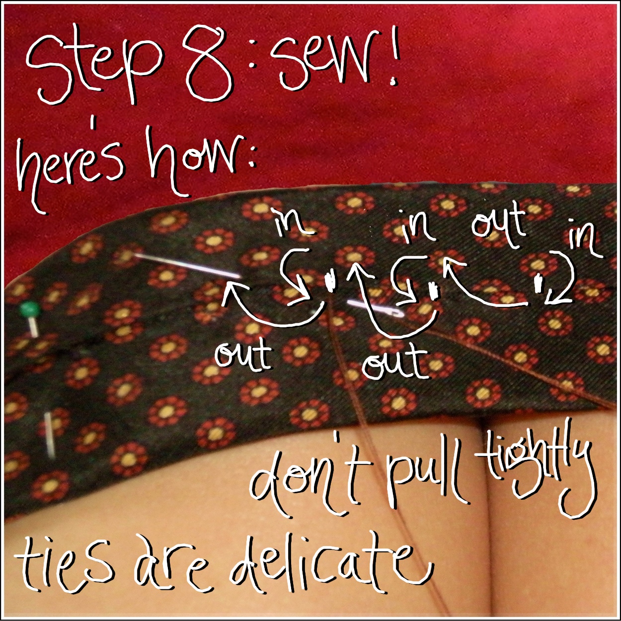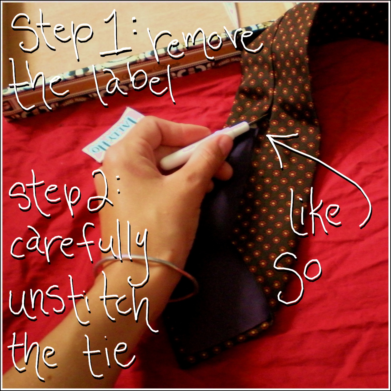 This week’s projects is fun for bois and grrrls of all genders. Are you having trouble finding anything but black skinny ties? Have you been dying to raid your dad’s/brother’s/uncle’s/grandpa’s closet for ties but just can’t figure out how to make their giant ’80s ties work with your getup? Well, the slump is over. Gather up your craft boxes and your nimble,nimble fingers. This one is just as easy as last week, but it requires a little more finesse. Despite traditionally being men’s clothing, ties are delicate silky things that require a light touch and low iron settings.