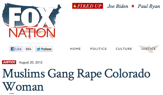 Political spin is always a thing these days when reporting news of any kind. I am certainly not fair and balanced: our live-blog of the Presidential Election was a liberal Obama celebration of love and gayness, so it’s pretty obvious where I’m coming from on the political spectrum. But political distancing of this type and scope is so problematic because it means a failure to examine the bias behind your own beliefs. Fox News, Fox Nation and publications like them actually do use fear and racism to further their agenda in news reporting, like the Westboro Baptist Church does. And this headline, taken down after a disagreement between two branches of the Fox brand, was certainly anti-gay. Bill O’Reilly is a conservative commentator with a religious agenda, the same religion that the Westboro Baptist Church makes a claim to (though to be honest, I wouldn’t call them Christians). The Tea Party is also a reactionary, socially conservative group whose grand majority of members also believe the gays are going to hell. To the right-wingers and especially to Fox Nation: You can’t pick who shares certain parts of your values, and as Salon reports, Fox Nation’s values on gay people, Islam and Obama are actually pretty closely aligned to views espoused by Westboro Baptist Church. Even if you are embarrassed by the idea that you believe and write the same things that WBC does sometimes, the “your team, not my team” strategy will not work in this case; conservatives need to really think about the biases that motivate their reporting and political decisions, not just shunt this ugly part away from them as far as they possibly can.