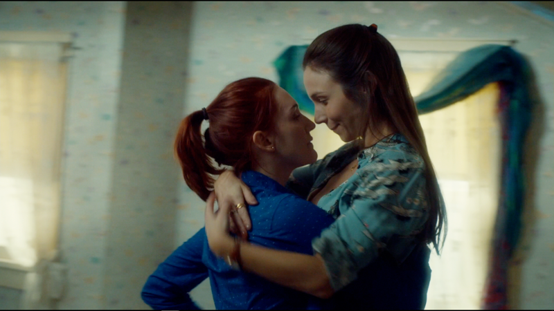 It’s not A-frame kissing with parkas on, it’s not blurry kisses near some candles in the woods. Nope. It’s a bright room and a clear lens, an unbuttoned shirt and a belt undone. At this point Nicole stops Waverly — with effort, like dragging your feet in the sand to stop a swing — and asks if she’s sure.