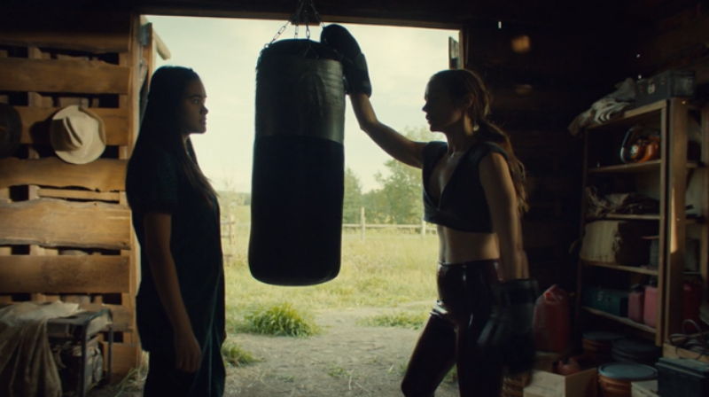 Rachel, realizing the intervention is finally over, goes to the barn to find Wynonna. Wynonna is pissed and taking it out on a punching bag. Rachel looks at Wynonna with admiration and hope and asks if Wynonna will train her; she wants to be able to defend herself…she wants to be like Wynonna.