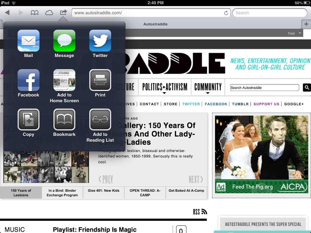 You can also save not just single articles, but entire websites in your reading list for offline viewing! This means you can read Autostraddle while you fly to A-Camp! Just tap the share button (it looks like an arrow popping out of a box) and tap add to reading list!